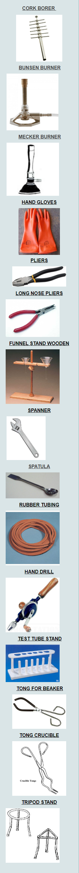 | BGLA-5A | Burette stand rod and clamp with boss head. (7'' x 5'') x 24'' | 260/- each |