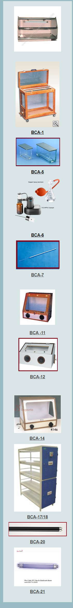 | BCA-2 | Biotech UV Chromatography inspection cabinet for viewing TLC plate fitted with UV tube | 5300 |