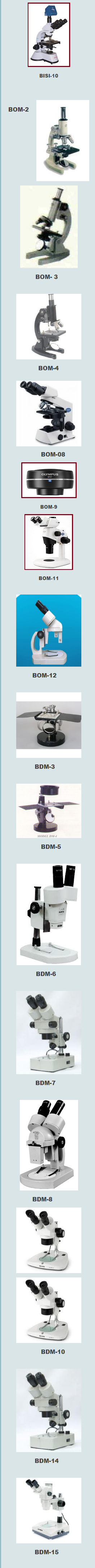 | BDM-10 | Biotech Stereoscopic inclined binocular (wide field ) Deluxe model: with inclined binocular head and sliding system objectives. Optical combination: sliding objectives 2x & 4x WF eye pieces-WF 10x and 15x paired. Magnification-30x to 75x working distance. 55mm to 80mm. | 11000/- |