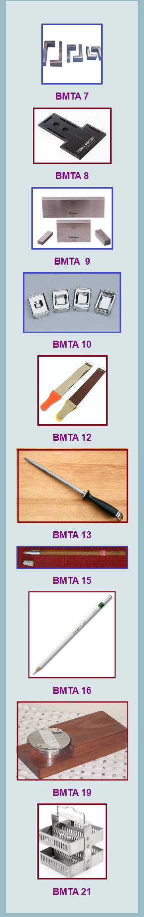| BMTA-13 | Sharpening Hone Size 6x 2" 8x2" 10x2" 12x2" Each Rs 180/- 270/- 750/- 1500/- | ||